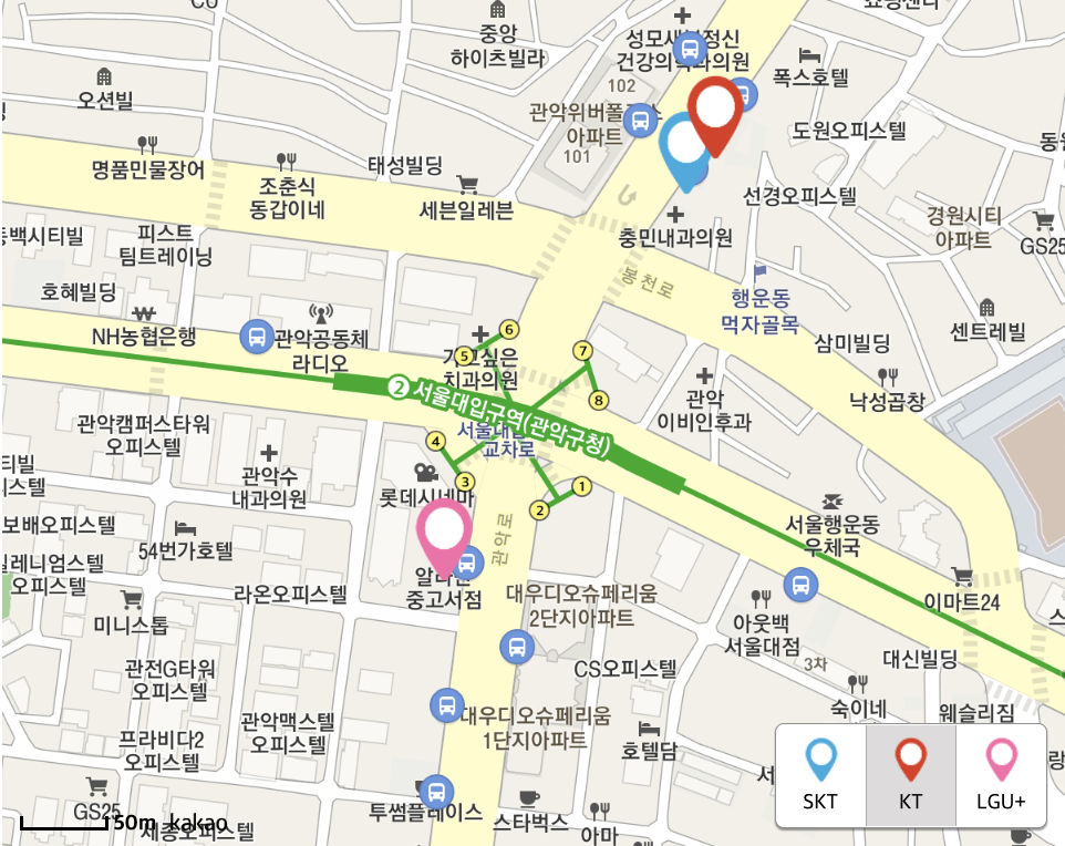 그리고 선택한 통신사 대리점들만 지도에 표시할 것이다!