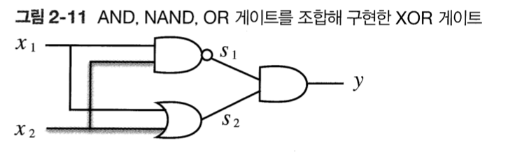 XOR 게이트를 만들기 위해 AND, NAND, OR 게이트를 조합하면 된다.