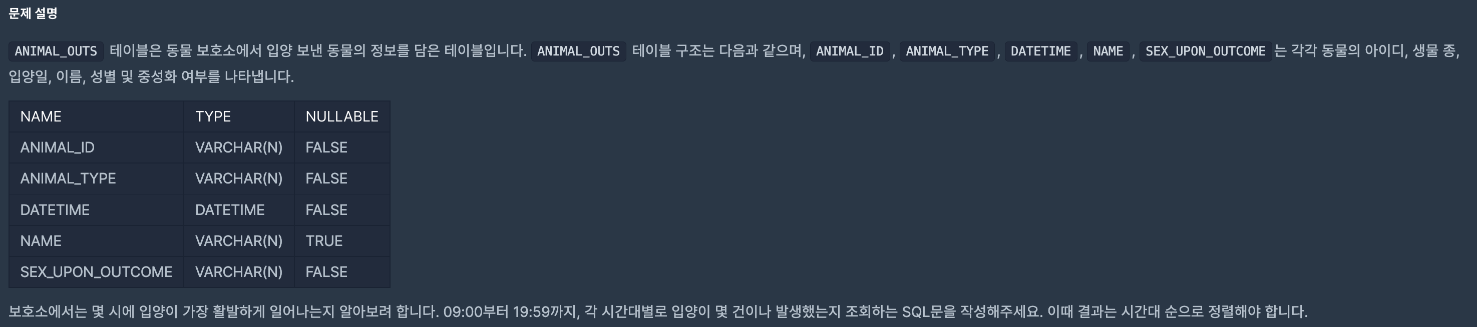| [self-study/level 1] SQL | 이름이 없는 동물의 아이디 | IS NULL (0) | 2022.03.16 |