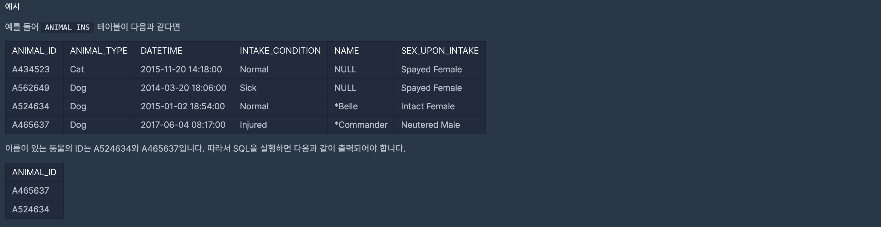 SELECT ANIMAL_ID
