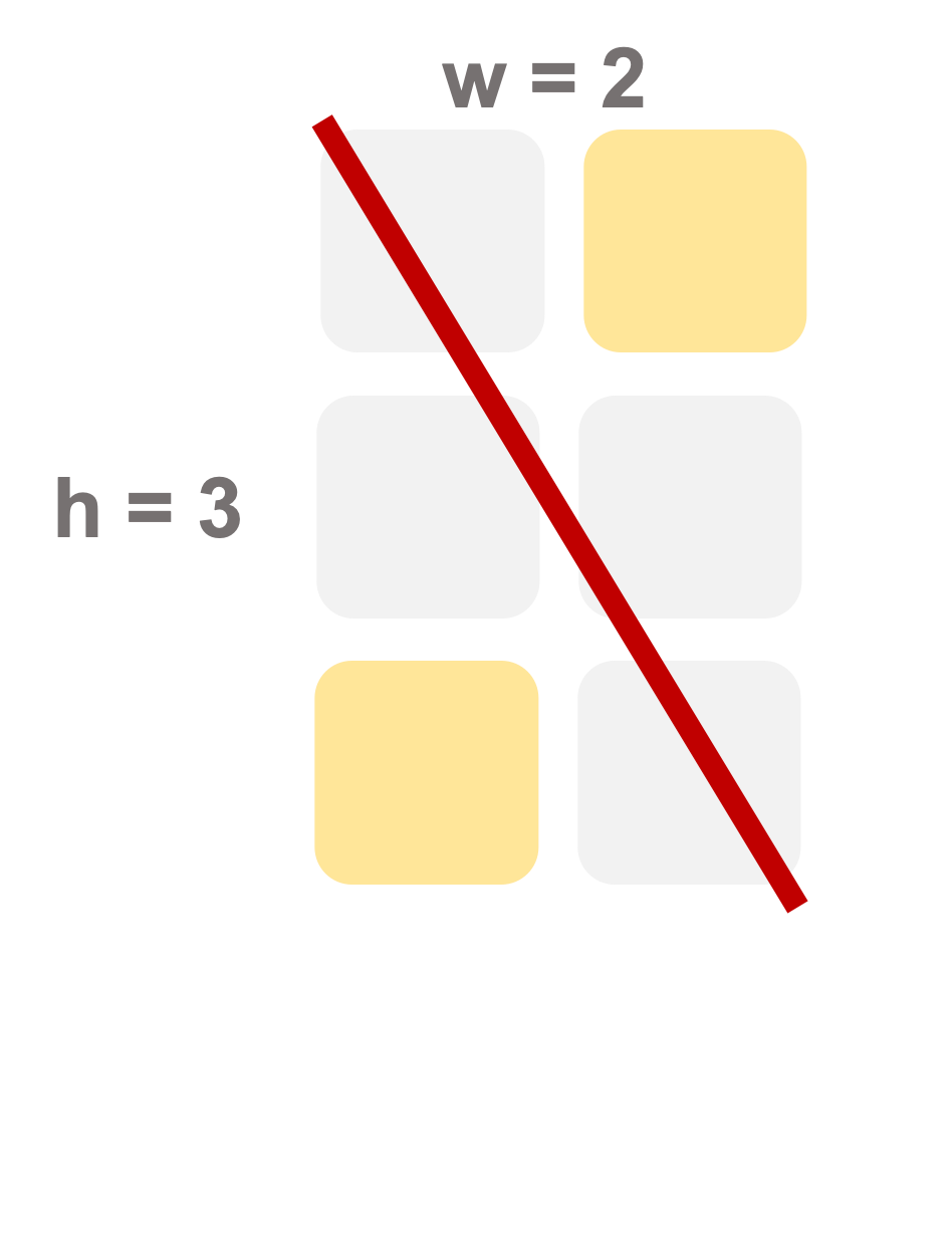 가로 길이가 Wcm, 세로 길이가 Hcm인 직사각형 종이가 있습니다. 종이에는 가로, 세로 방향과 평행하게 격자 형태로 선이 그어져 있으며, 모든 격자칸은 1cm x 1cm 크기입니다. 이 종이를 격자 선을