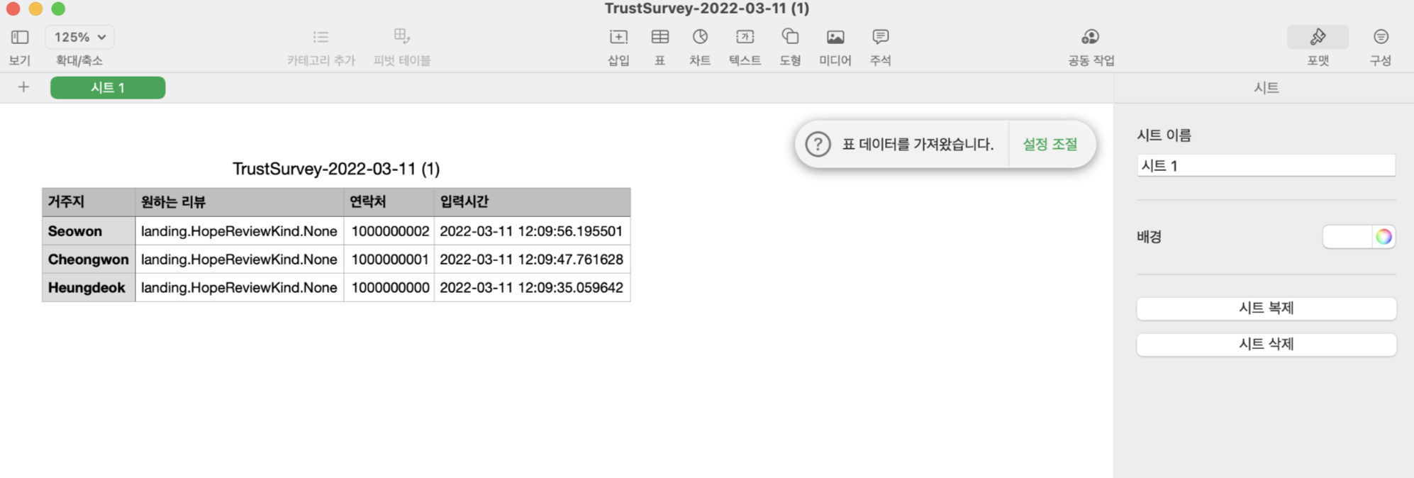 👉🏻모두 TrustSurveyResource를 살펴보자! 이전과는 다르게 모든 field의 column_name과 attribute를 설정해주었다. 왜냐하면 엑셀의 열이름을 model의 field명인 residence나 hope_review처럼 영어로 쓰지 않고 거주지, 원하는 리뷰 등 한글로 입력하고 싶었기 때문이다. 해당 db들은 엑셀로 export해서 대표님께 전달드려야 했기 때문에 엑셀 열이름이 한글로 되어있어야 정보를 확인하시기 편할 것 같아 한글로 설정했다!
